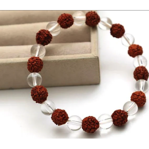 Balance spiritual energy and clarity with our Crystal Rudraksha Beads Bracelet, designed with smooth 8mm natural crystal beads paired with sacred Rudraksha seeds. This powerful combination unites the cleansing and healing energy of crystal with the divine protection and spiritual significance of Rudraksha.